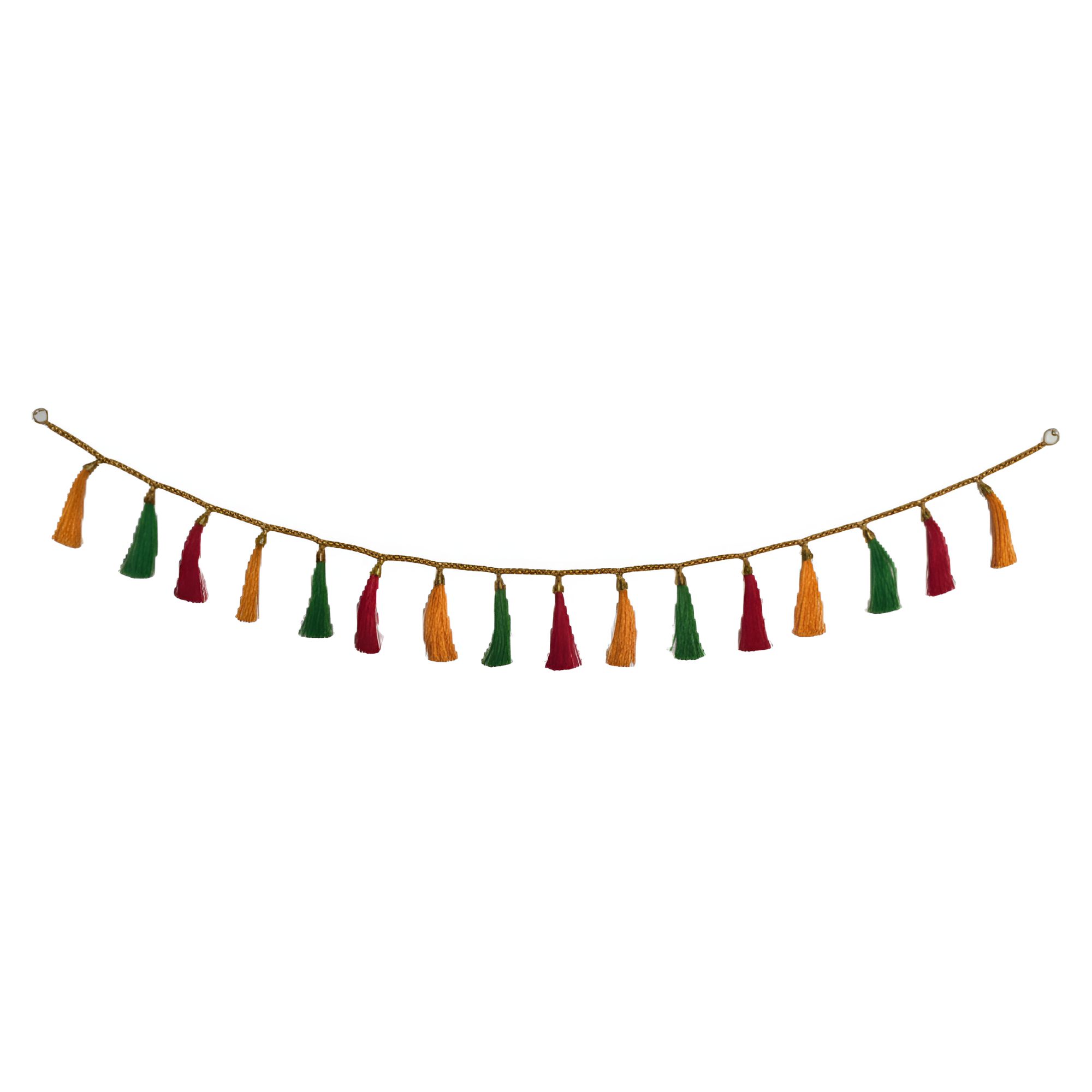 Bring home the essence of Indian tradition with this handmade ethnic tassel toran, a timeless piece of traditional handicraft. Designed with vibrant colors and soft cotton tassels, this door hanging adds a festive and elegant touch to your home décor.